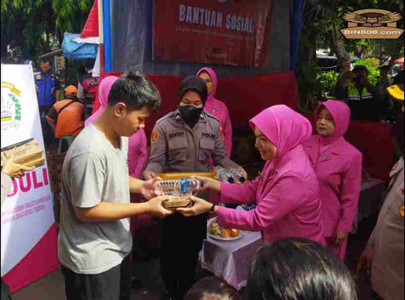 Bakti Sosisl Polres Metro Jakarta Timur Bersama Bhayangkari Bagikan Ratusan Nasi Kotak