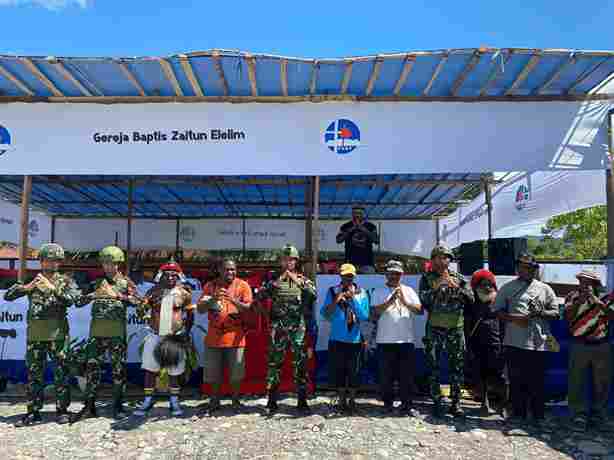 Yalimo, – BIN808.COM || TNI menggelar berbagai bakti sosial di gereja-gereja Papua, seperti pengobatan massal, renovasi dan pembangunan fasilitas ibadah, serta pembagian sembako berupa Beras 100 kg, Rokok 5 slops, 100 Alkitab yang langsung diterima oleh Panitia Peresmian Gereja Baptis Zaitun Elelim di Bpk. Herman Wenda.