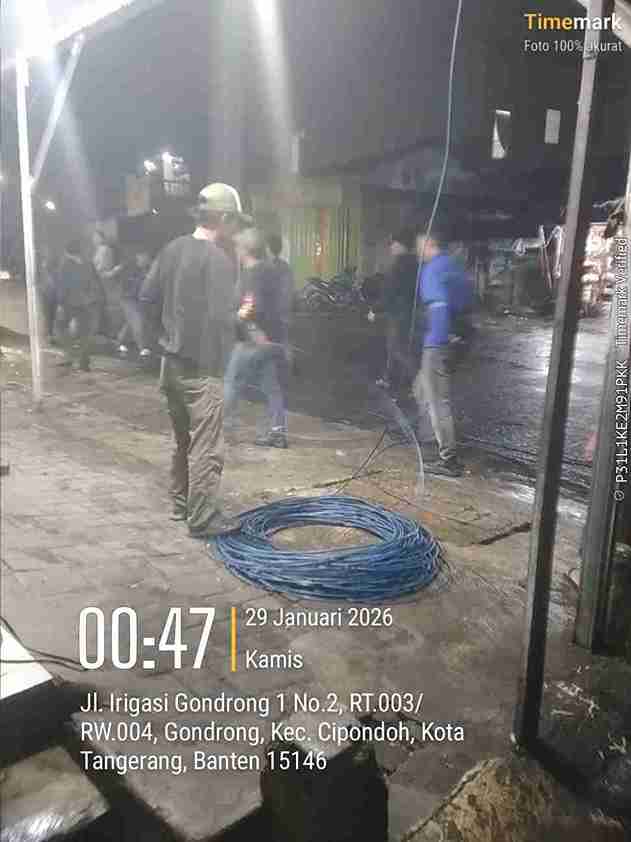 Tangerang, -BIN808.COM || – Lagi – lagi diduga pemasangan kabel wifi sepanjang 3000 meter tabrak perda no 8 tahun 2018 disinyalir diduga ada oknum pejabat wilayah yang membeckup, sehingga pemasangan kabel wifi tersebut berjalan lancar.Kamis (29-01-2026) pukul 00.47 dinihari.