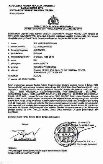 Peristiwa ini telah dilaporkan secara resmi ke Polda Metro Jaya dengan nomor:
