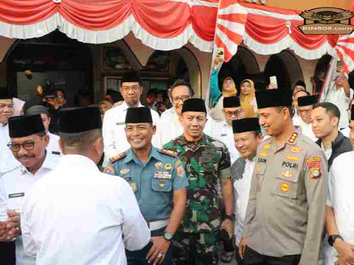 Tangerang,- BIN808.COM || Kapolres Metro Tangerang Kota, Polda Metro Jaya, Kombes Pol Zain Dwi Nugroho bersama Wali Kota Tangerang, H. Sachrudin, Danrem 052 Wijaya Krama, Dandim 0506 Tangerang, Kajari Tangerang dan sejumlah pejabat daerah Kota Tangerang, menyambut kedatangan Gubernur Banten, Andra Soni dalam Safari Ramadhan 1446 hijriah/2025 Masehi.