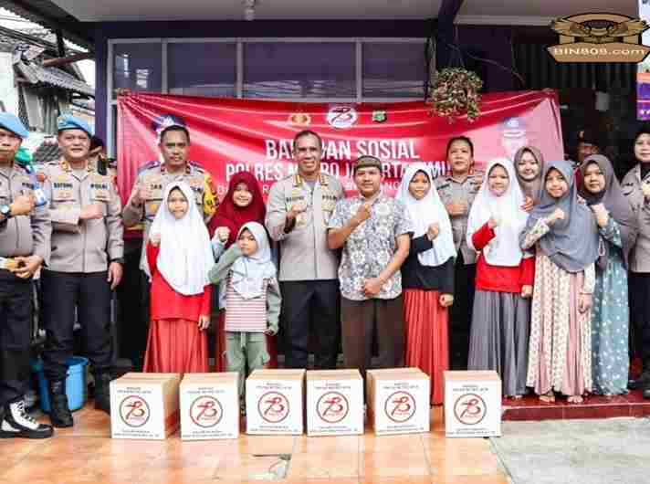 Kapolres Metro Jakarta Timur Kombes Pol Nicolas Ary Lilipaly, S.I.K, M.H, M.Si yang didampingi Pejabat Utama Polres dan Anggota memberikan bantuan sosial kepada anak yatim-piatu.