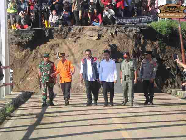 Pangdam III/Slw, bersama Kepala BNPB, Wamen PUPR, Kabasarnas, Wakapolda Jabar, Danrem 061/SK dan Unsur Forkopimda Kab. Sukabumi menyambut dan mendampingi seluruh kegiatan Wapres di lokasi bencana putusnya Jembatan Bojong Kopo, Desa Cidadap Kec. Simpenan maupun di Kp. Gumelar Kec. Palabuhanratu.