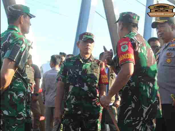 Pangdam III/Slw memeriksa titik-titik pengamanan di sepanjang rute yang dilalui rombongan, termasuk lokasi jembatan Kopo Desa Cidadap serta lokasi banjir di Kp. Gumelar Kab. Sukabumi.