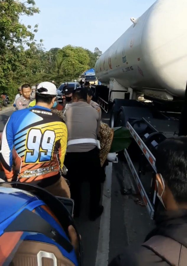 “Di saat yang sama, truk tangki tronton Pertamina melintas dari arah berlawanan dan melindas korban,” tambahnya Edwin.