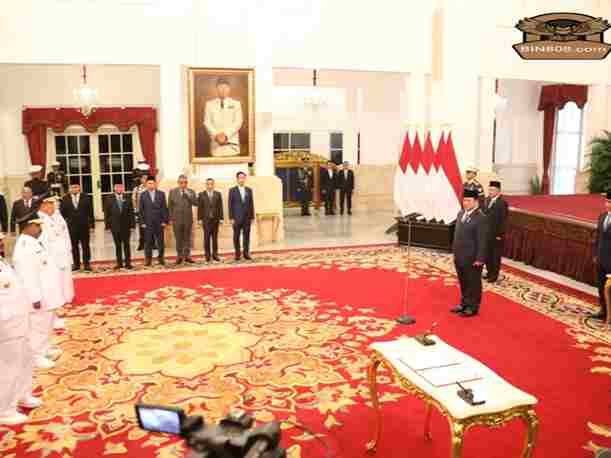 Jakarta, –BIN808.COM || Menteri Dalam Negeri (Mendagri) Muhammad Tito Karnavian mendampingi Presiden Prabowo Subianto melantik Gubernur dan Wakil Gubernur Kepulauan Bangka Belitung (Babel) Hidayat Arsani dan Hellyana, serta Gubernur dan Wakil Gubernur Papua Pegunungan John Tabo dan Ones Pahabol. Pelantikan berlangsung di Istana Negara, Jakarta, Kamis (17/4/2025).
