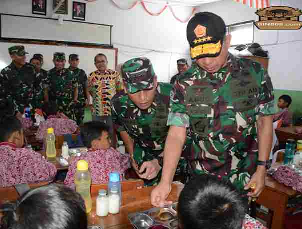 Cimahi, –BIN808.COM || Panglima TNI, Jenderal TNI Agus Subiyanto, S.E., M.Si., didampingi Pangkostrad, Pangdam III/Siliwangi, Para Asisten Panglima TNI, Danpuspom, Kapuskes dan Kapuspen TNI meninjau pelaksanaan program Makan Bergizi Gratis (MBG) di SD Negeri Pasir Kaliki Mandiri 2, Kota Cimahi, Kamis (06/02/2025).