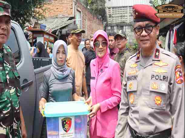 Karobinopsnal Bareskrim Polri, Brigjen Pol Raden Yoseph Wihastono Yoga Pranoto didampingi Kapolres Metro Tangerang Kota Kombes Pol Zain Dwi Nugroho dan jajaran Bareskrim Mabes Polri maupun Bhayangkari, melaksanakan bhakti sosial (baksos) Bareskrim Polri Peduli Banjir di lokasi Pengungsian RPH TUM, Kampung Candulan, Kelurahan Petir, Kecamatan Cipondoh. Kamis, (6/3/2025) pagi WIB.