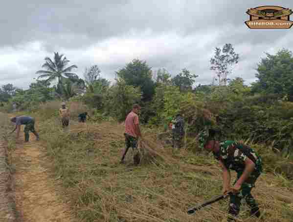 Masyarakat Kampung Hafoe menyambut baik kegiatan karya bhakti yang dilakukan oleh personel Pos Asgon Satgas Yonif 123/Rajawali.