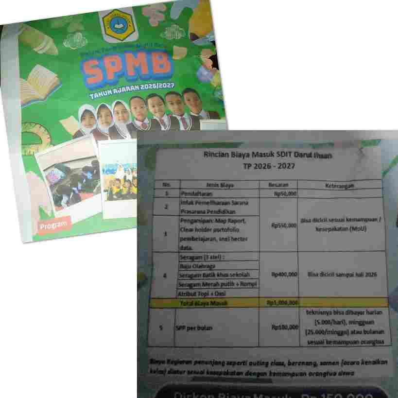 Bandung Barat ,- BIN808.COM || Beredarnya brosur resmi Rincian Biaya Masuk SDIT Darul Ihsan Tahun Pelajaran 2026–2027 yang berlokasi di Kampung Cibodas Hilir, RT 04 RW 011, Desa Cilame, Kecamatan Ngamprah, Kabupaten Bandung Barat, menimbulkan sorotan tajam mengenai kepatuhan sekolah terhadap aturan wajib belajar dan larangan pungutan pada pendidikan dasar.