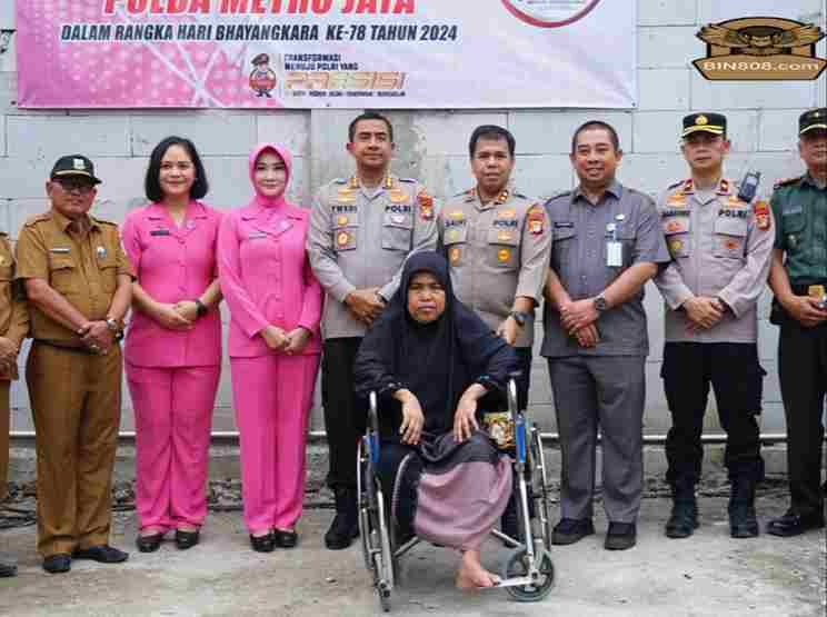 Kabupaten Bekasi , – BIN808.COM || Dalam rangka memperingati Hari Ulang Tahun Bhayangkara ke-78, Polres Metro Bekasi mengadakan kegiatan sosial berupa Bedah Rumah Tidak Layak Huni (Rutilahu) dan pemberian bantuan sosial (Bansos) di Kampung Sumapan, Desa Simpangan, Kecamatan Cikarang Utara, Kabupaten Bekasi, Selasa (25/6/2024).