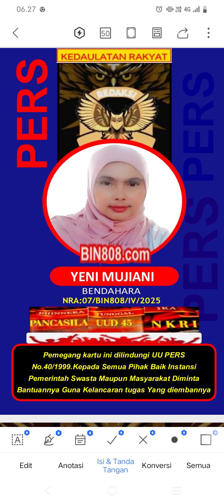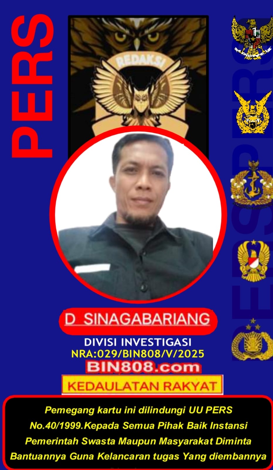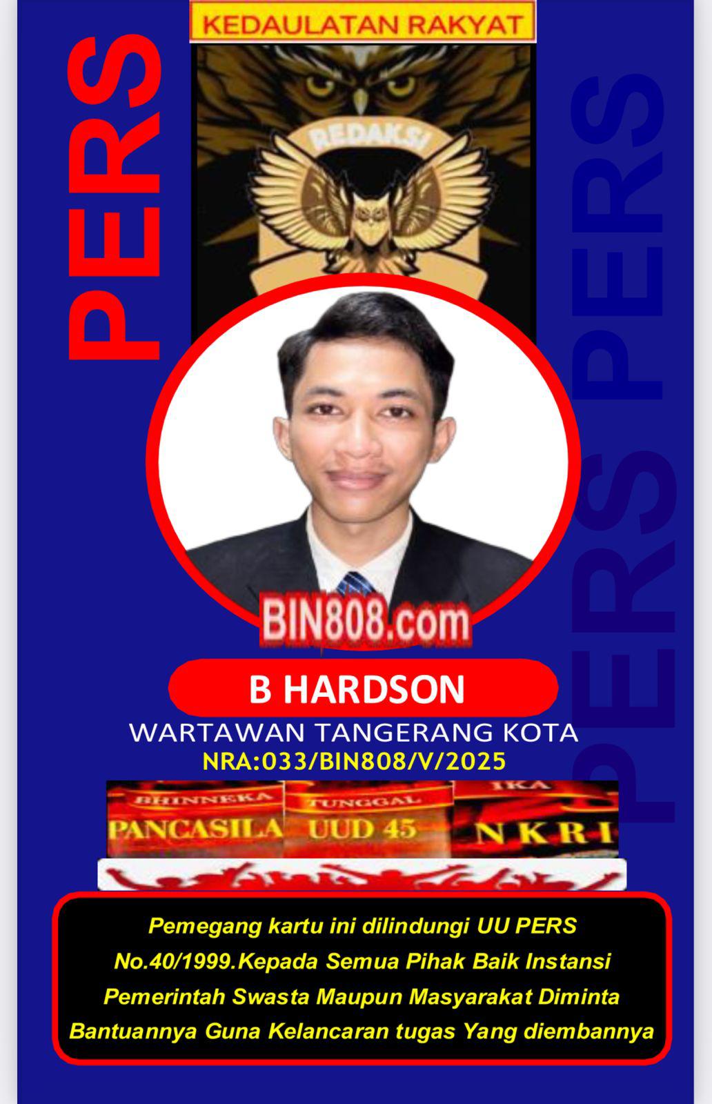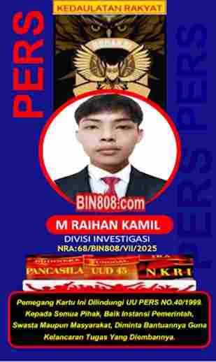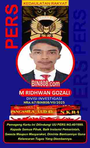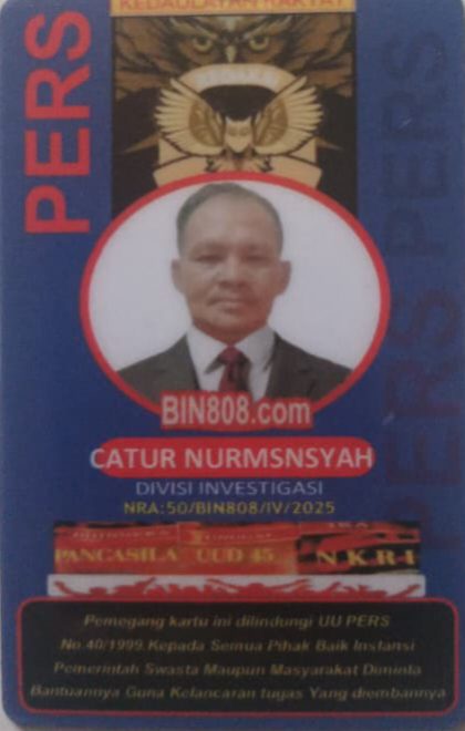 Wartawan Media BIN808.COM dalam menjalankan tugas liputannya selalu dibekali kartu Pers, atau surat tugas serta namanya tercantum di dalam Bok Redaksi.