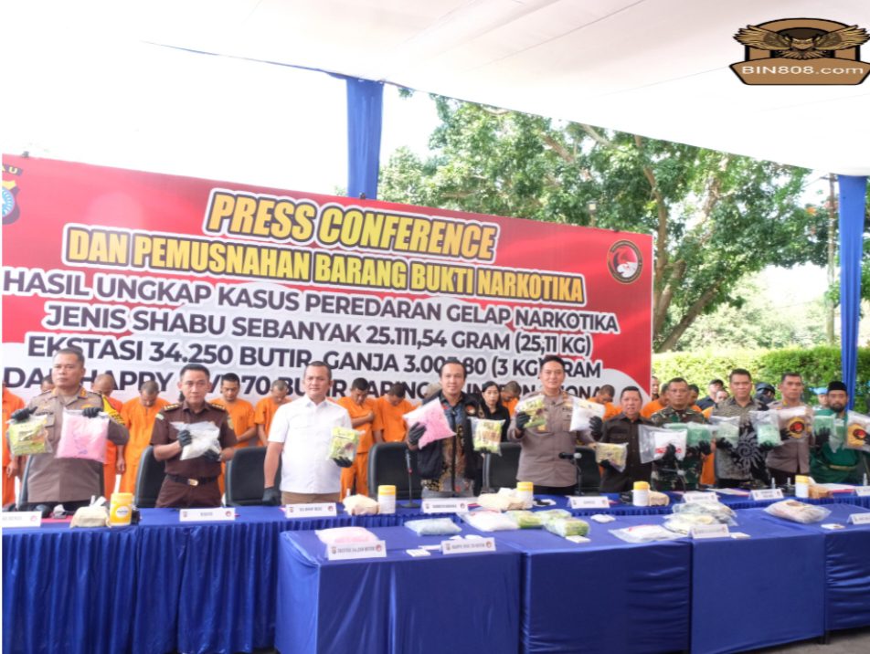 Lebih lanjut ia menjelaskan bahwa pada Mei-Juni 2024 total barang sitaan, yakni 25,1 Kg sabu, 34.250 butir pil ekstasi, 3 Kg ganja kering dan 70.000 butir pil happy five. Kemudian, ditangkap 25 tersangka, di mana 11 di antaranya adalah jaringan internasional.